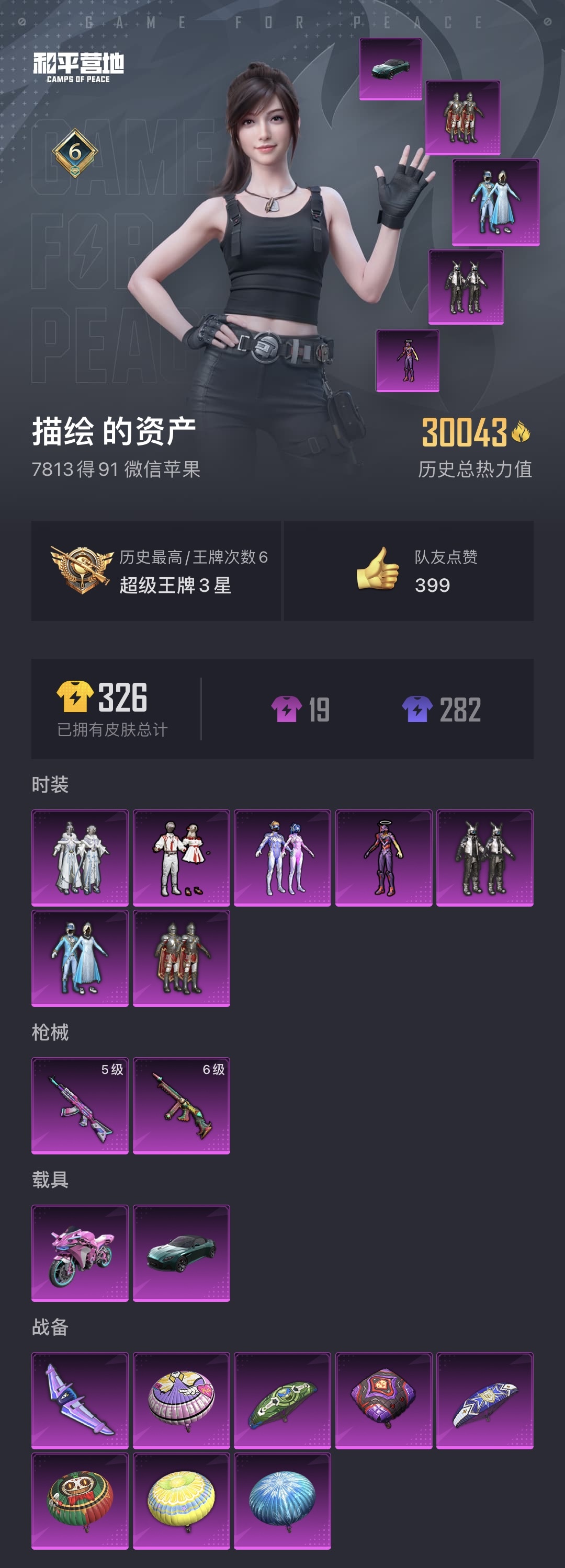 蘋果QQ-包人臉-紅螳螂-木乃伊-巡查衣-雪國-星際m4-10粉裝-5特效-3載具-房陳迷賬號 月底解除