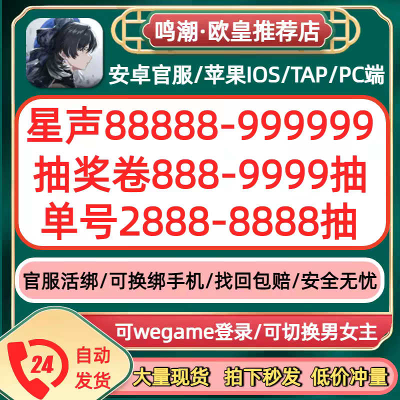 【官服活綁520抽/男女主可切】50000星聲+80喚聲渦紋+2-10浮金(安全不封)