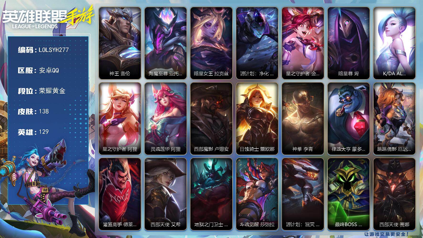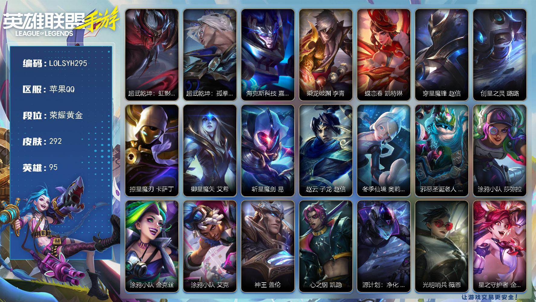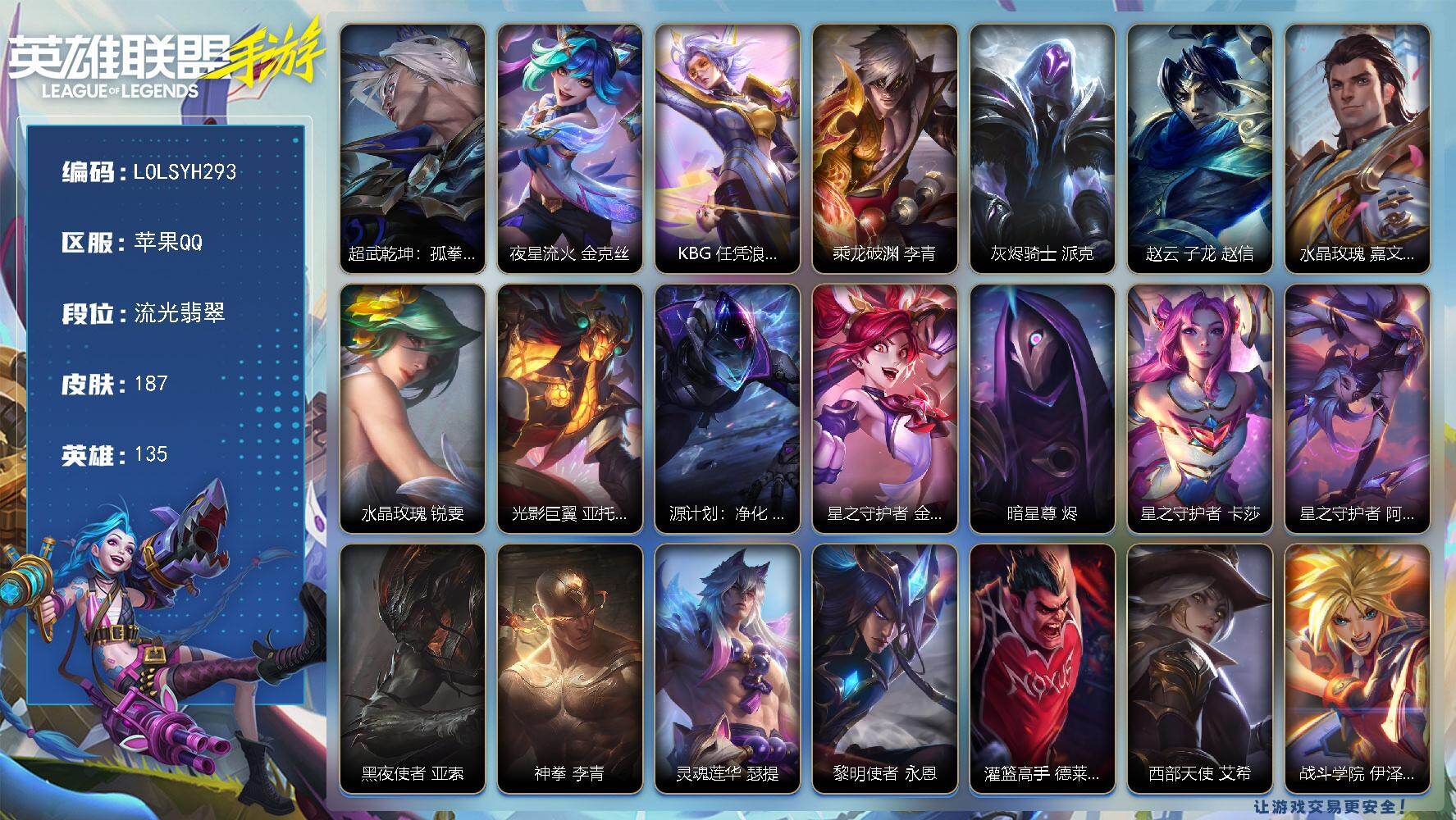 135英雄/187皮膚/1典藏/4神話/18傳說(shuō)/流光翡翠/超武乾坤瑟提/夜星流火 金克絲