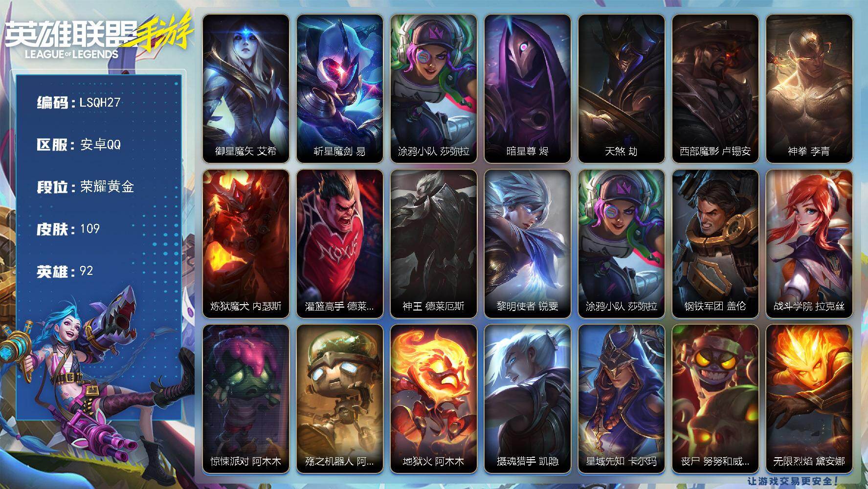 92英雄/109皮膚/9傳說(shuō)/47史詩(shī)/榮耀黃金/御星魔矢 艾希/斬星魔劍 易