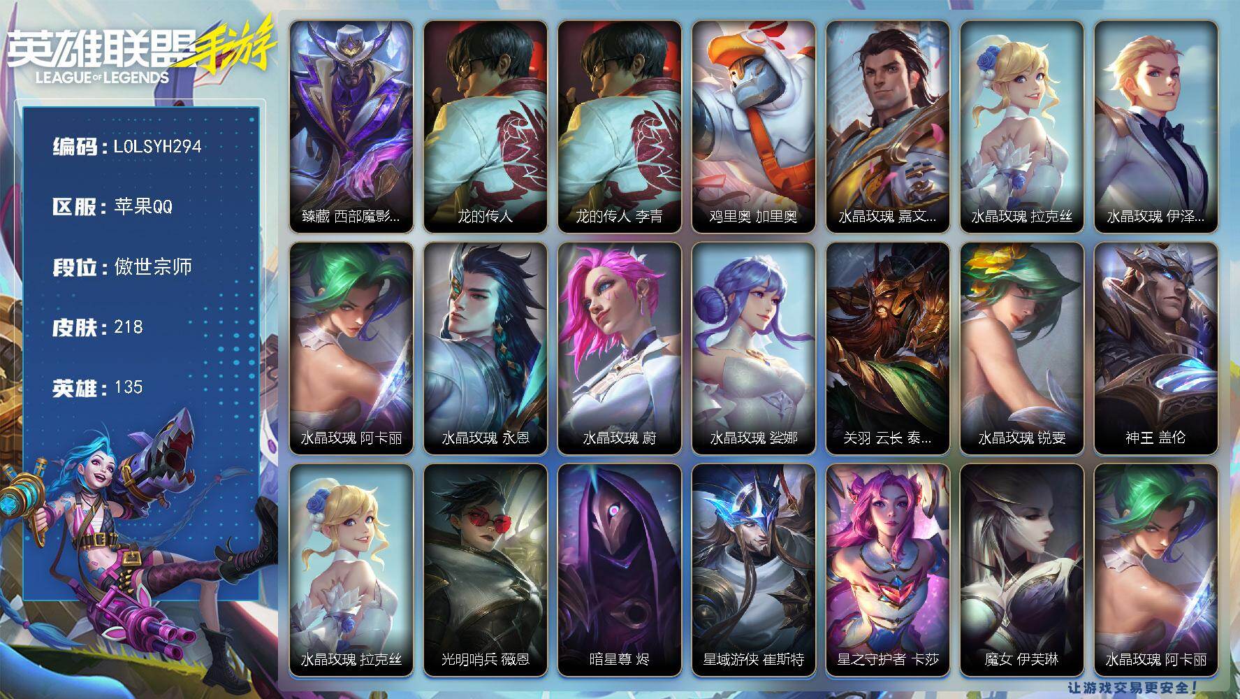 [16953536]2限定 10傳說(shuō) 23史詩(shī) 78皮膚 可二次 可修改實(shí)名