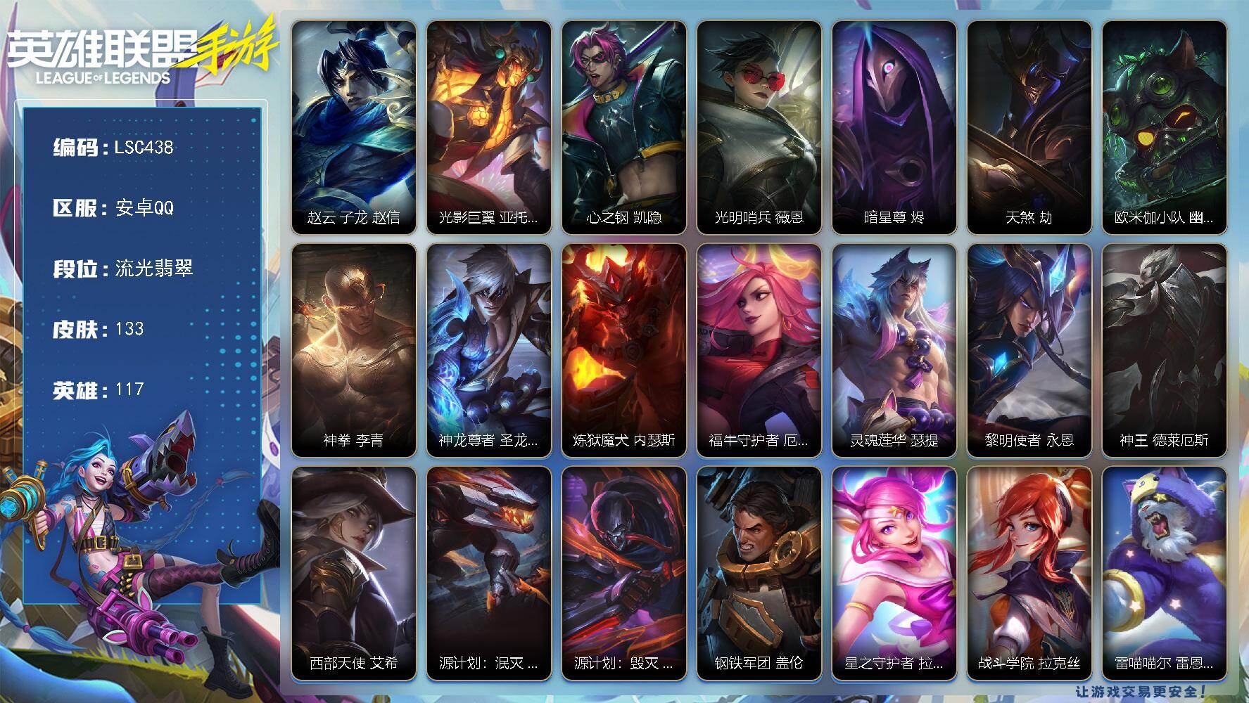 117英雄/133皮膚/流光翡翠/趙云 子龍 趙信/光影巨翼 亞托克斯