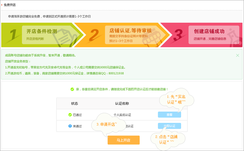 基本流程:注冊(cè)/登錄賬號(hào)>實(shí)名認(rèn)證>申請(qǐng)開店>審核>開店成功