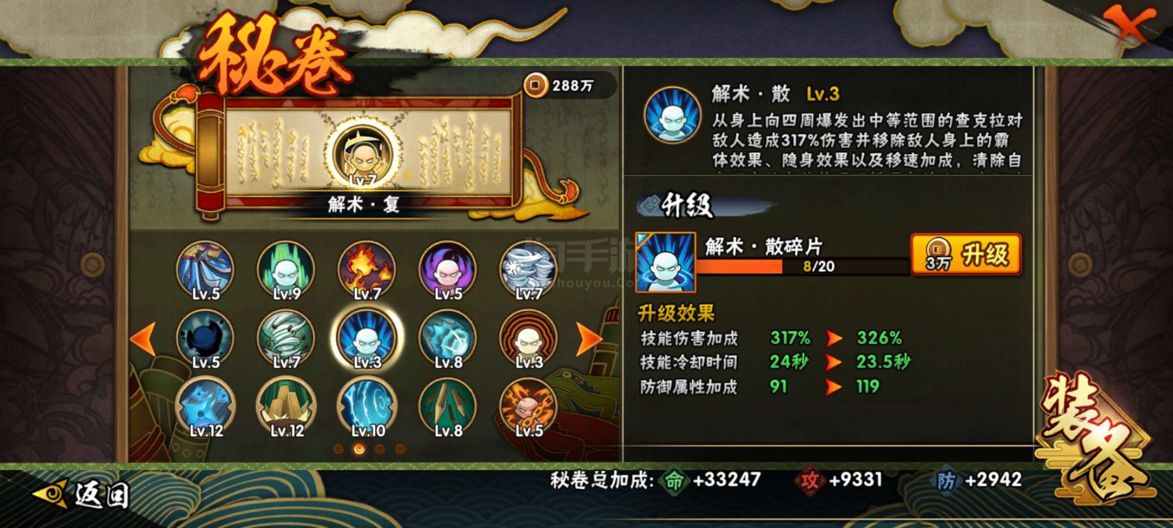 V 11,6個點卷a忍。三個忍法帖,一個98B忍,神農(nóng)和穢土角度。有忍法帖密卷。忍戰(zhàn)櫻64片。